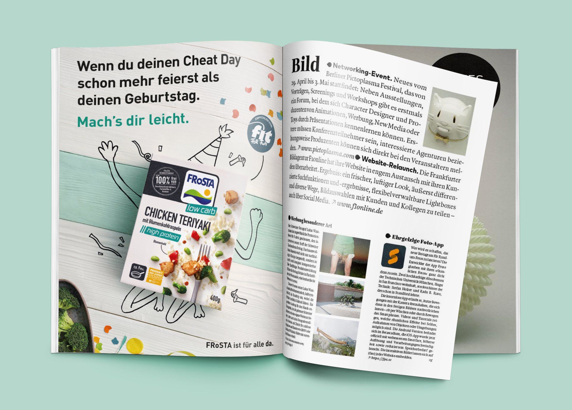 2019-2019 | Hamburg | Wynken Blynken & Nod | Our first task with winning FRoSTA as our new client was twofold. First: market the new innovation of paper bags for frozen products instead of plastic bags in a quick and cheap way, while still getting some media buzz going. Right after that our second task was to create a new Look&Feel for their low carb product line that said something like: "Hey, why not low carb?" instead of "Go heavy lifting and get muscular." Both campaigns happened in short succession. CLIENTS: FRoSTA